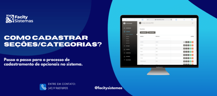 Com esses passos simples, você pode cadastrar seções/categorias no Facity Controle e organizar seus produtos para facilitar a busca no sistema de vendas e no cardápio digital.