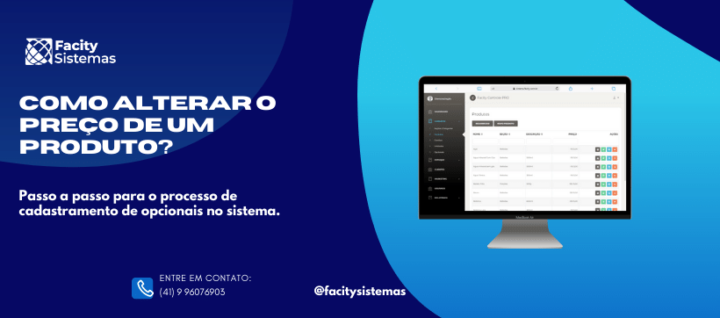 Passo a passo de como alterar o preço de um produto no Facity Controle: