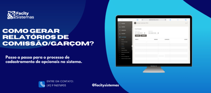 Neste post, vamos te ensinar a gerar relatórios de comissão/garçom utilizando o Facity Controle. Confira abaixo o passo a passo: